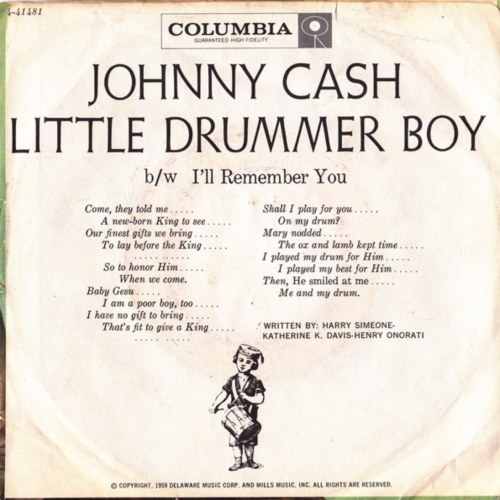 1959 COLOMBIA 4-41481 Johnny Cash Little Drummer Boy / I'll Remember You